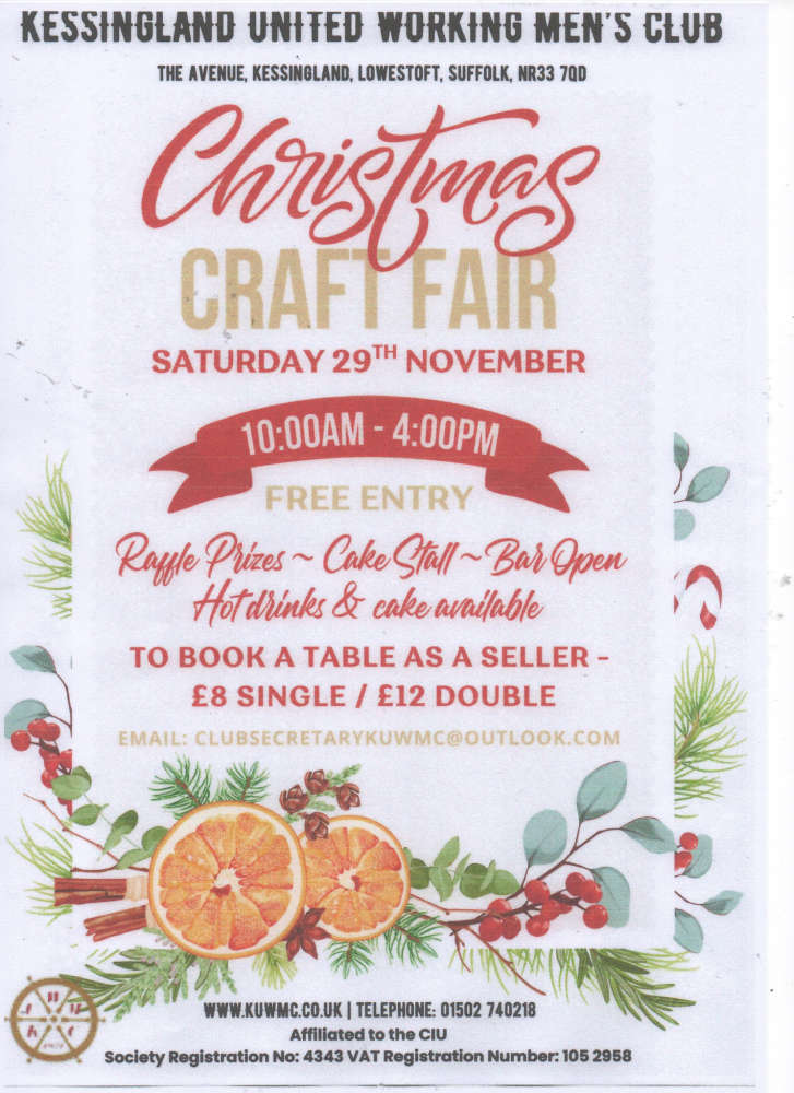 Kessingland United Working Mens Club Christmas Craft FairNovember 29th 2025