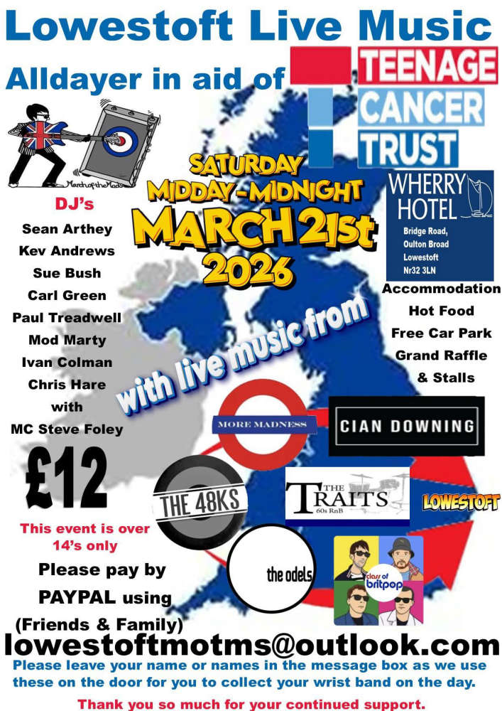 Lowestoft Live Music Alldayer in aid of Teenage Cancer TrustMarch 21st 2026