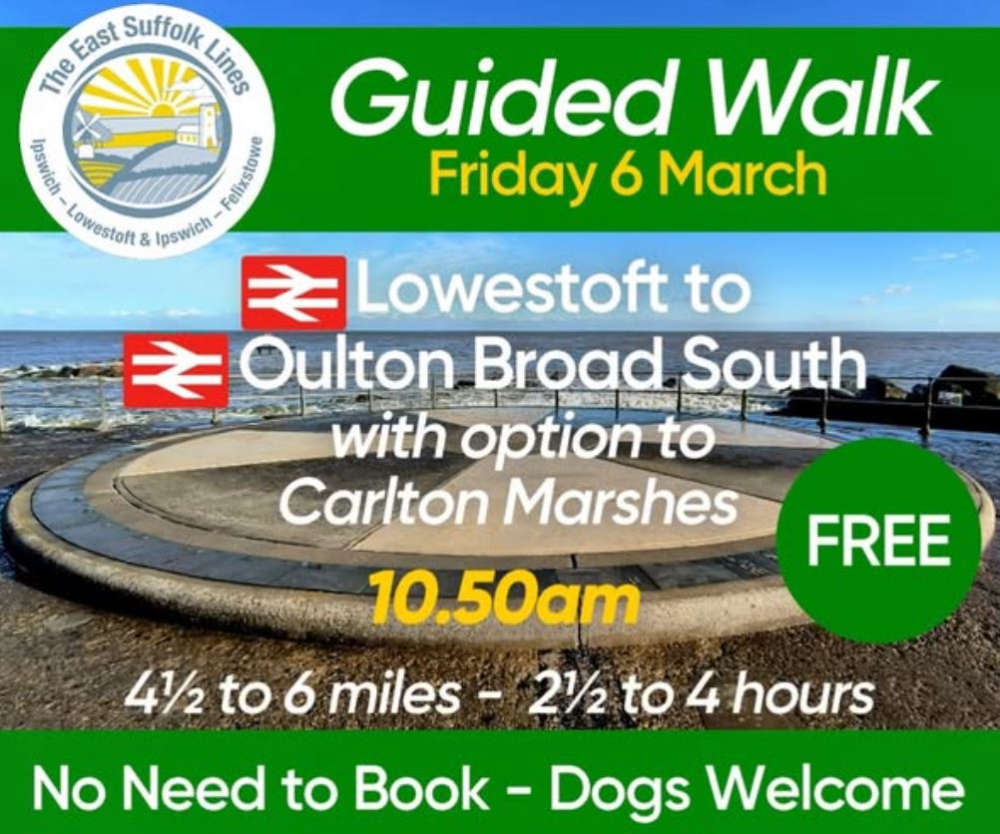 Organisers say the walk will begin at 10.50am from Lowestoft Station and follow a route to Oulton Broad South, with the option to continue on to Carlton Marshes, where walkers can stop at the Suffolk Wildlife Trust café.