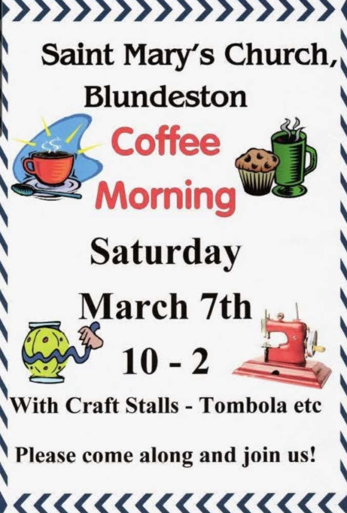 Saint Mary's Church Blundeston coffee morning Saturday Match 7th 10am to 2pm