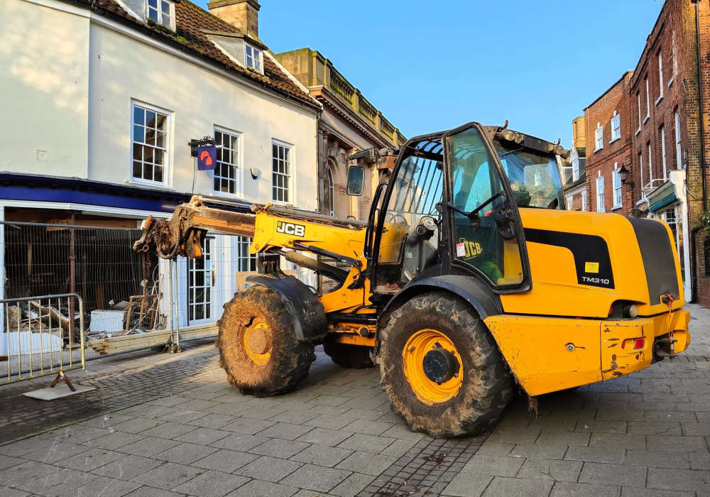Officers say a telehandler was used to ram the front of the building before the cash machine was dragged from the premises and loaded into a dark-coloured van, possibly a Ford Transit.