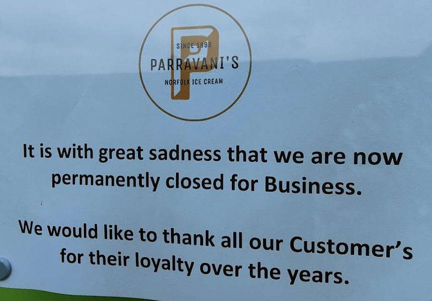 Parravani’s Ice Cream, a well-known Suffolk brand, went into voluntary liquidation in October after more than a century of trading. The company had produced ice cream and desserts enjoyed across East Anglia for generations.